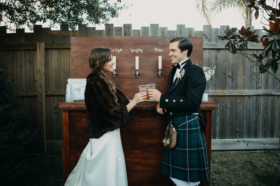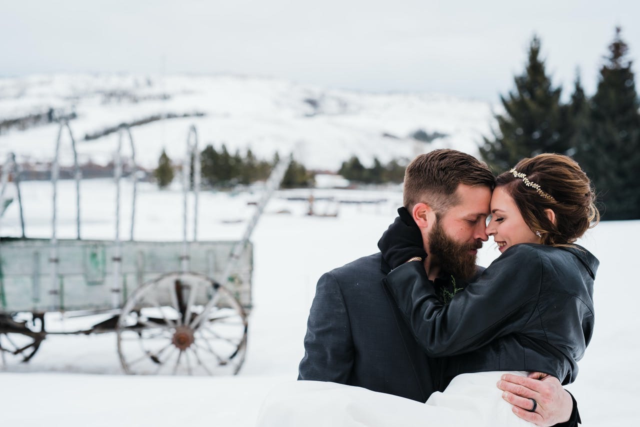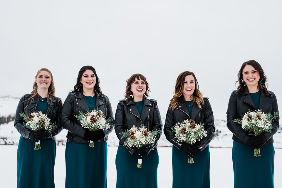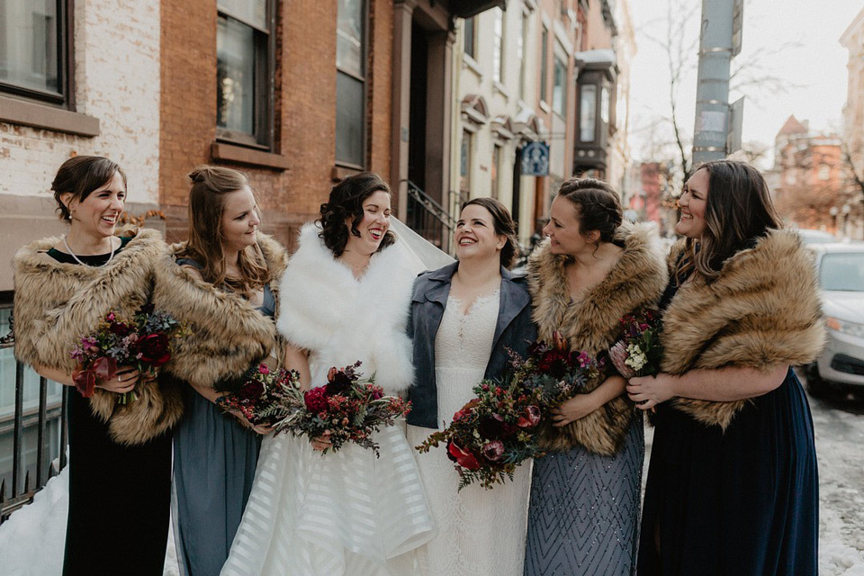 A leather moto jacket that says BRIDE on the back? Um, sign us up! Winter weddings let you layer up in style, without the risk of overheating. So say yes to that gorgeous long-sleeved gown, a chic velvet shawl, a luxe designer scarf, or a faux-fur stole. And don't forget all the cozy flannel! Get cute button-down flannel shirts for getting ready with your bridesmaids. It's the cold-weather spin on the bridesmaid robe trend! You'll get a warm-and-fuzzy feeling every time you look at your photos.