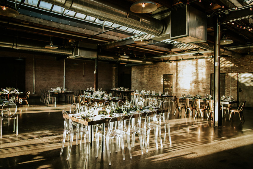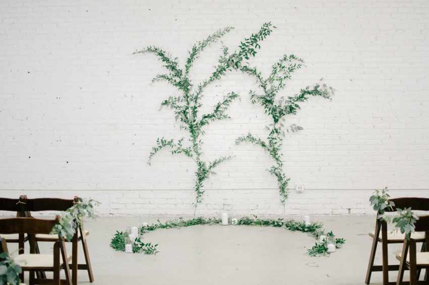 For a truly minimal backdrop, a "blank canvas" wedding venue is the way to go. Industrial spaces are a popular choice for minimalist weddings, since these venues are no-frills by nature (think a roof, four walls, and a floor!). A modern, raw-space venue is the ideal choice for a bare-bones aesthetic, but if your style is more organic than urban consider holding your wedding outdoors in a forest clearing, a sprawling meadow, or in front of an expansive view.