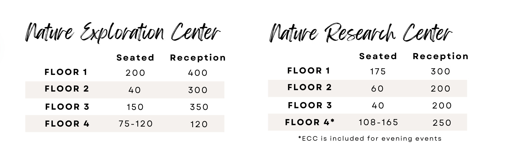 Capacities vary depending on the venue selected (NEC or NRC) and spaces reserved. See link below for additional details.