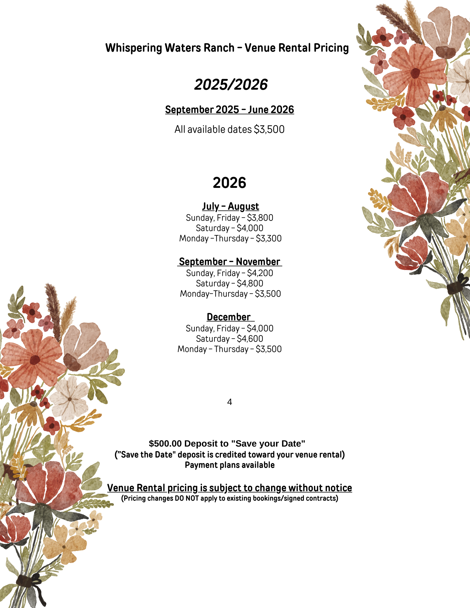 Tour & Save! Whispering Waters Ranch has special offers reserved for couples who tour the venue to experience the beauty firsthand. Inquire today to schedule your tour!